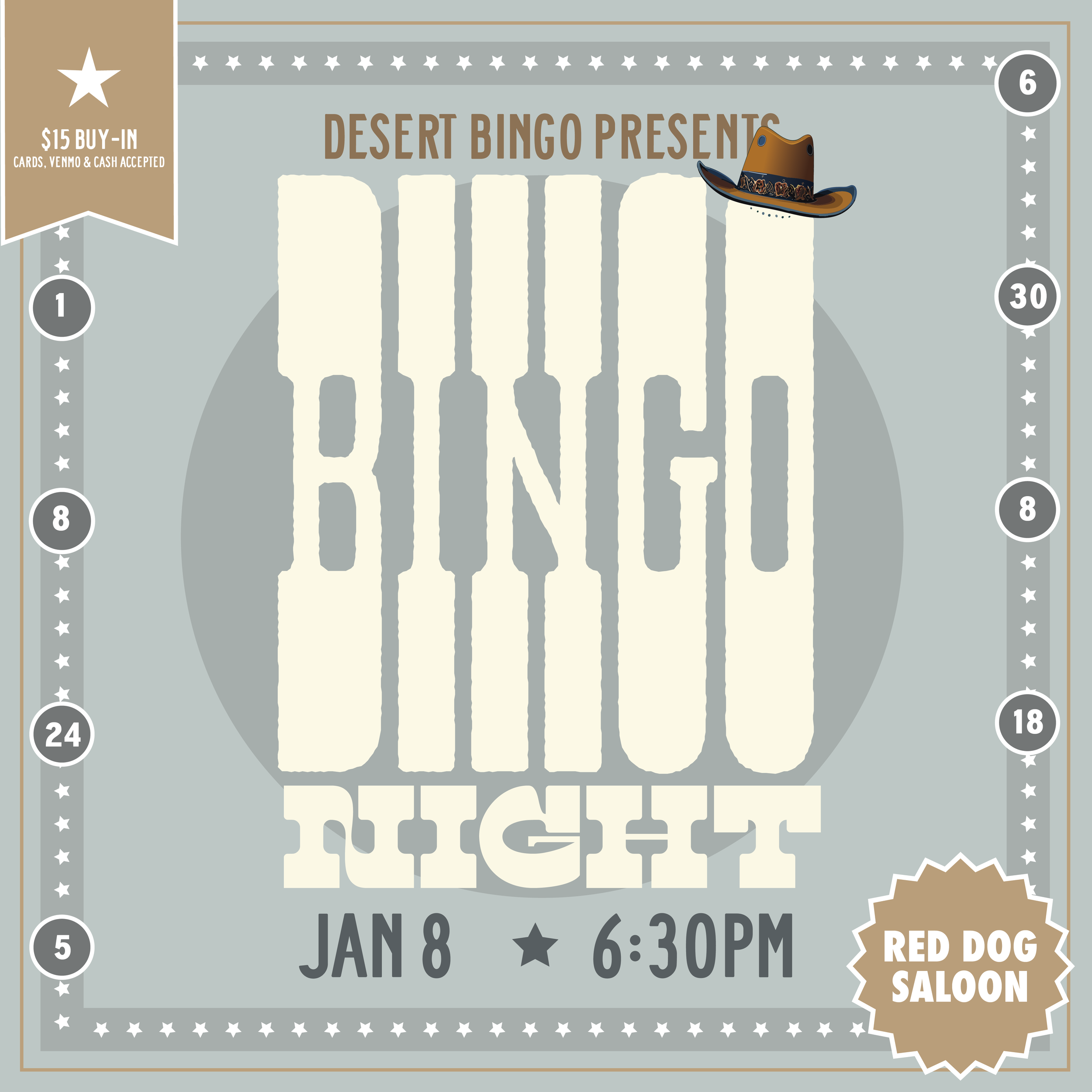 Back to All Events Desert Bingo Presents: Bingo Night Monday, January 8, 2024 6:30 PM 7:30 PM Google Calendar ICS