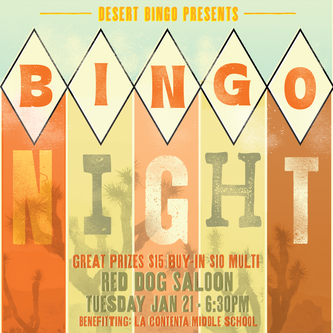 Back to All Events Desert Bingo Presents: Bingo Night Tuesday, January 21, 2025 6:30 PM 10:00 PM Google Calendar ICS