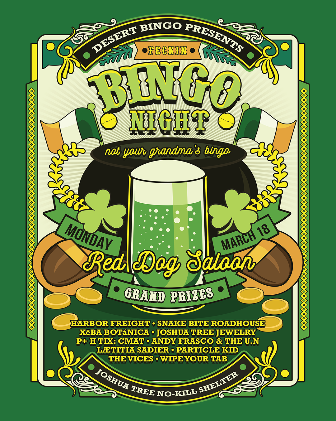 Back to All Events Desert Bingo Presents: Bingo Night! Monday, March 18, 2024 6:30 PM 10:00 PM Google Calendar ICS