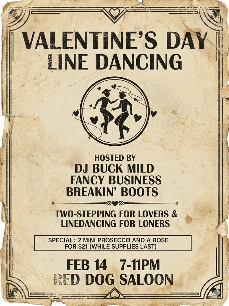 Back to All Events Valentine's Day Line Dancing Saturday, February 14, 2026 7:00 PM 11:00 PM Google Calendar ICS